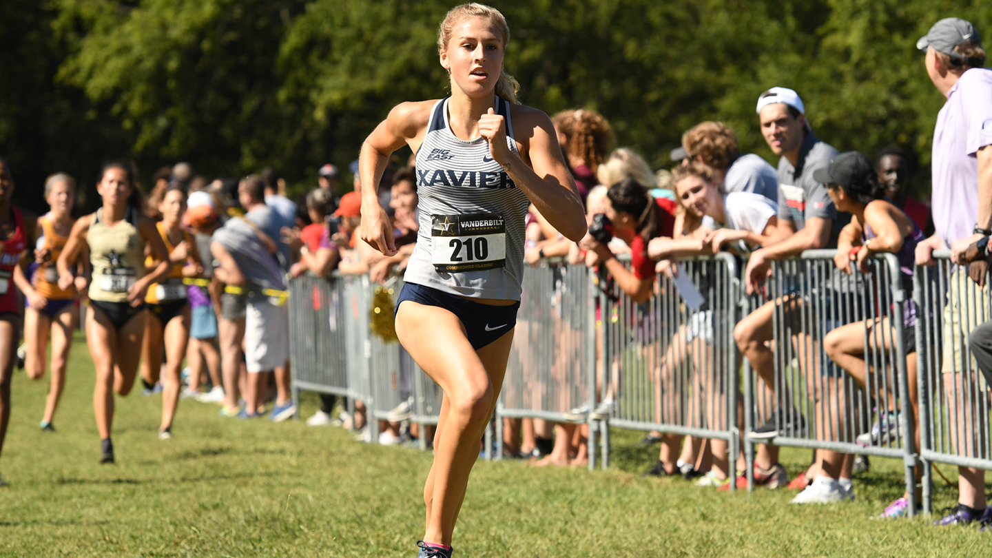 Photo courtesy of goxavier.com | Sophomore Jenna Clayworth’s time of 21:19.50 landed her with a 20th-place finish out of 298 runners at the Bradley Pink Classic last Friday. With this result, she also set the ninth-best 6K time in school history.