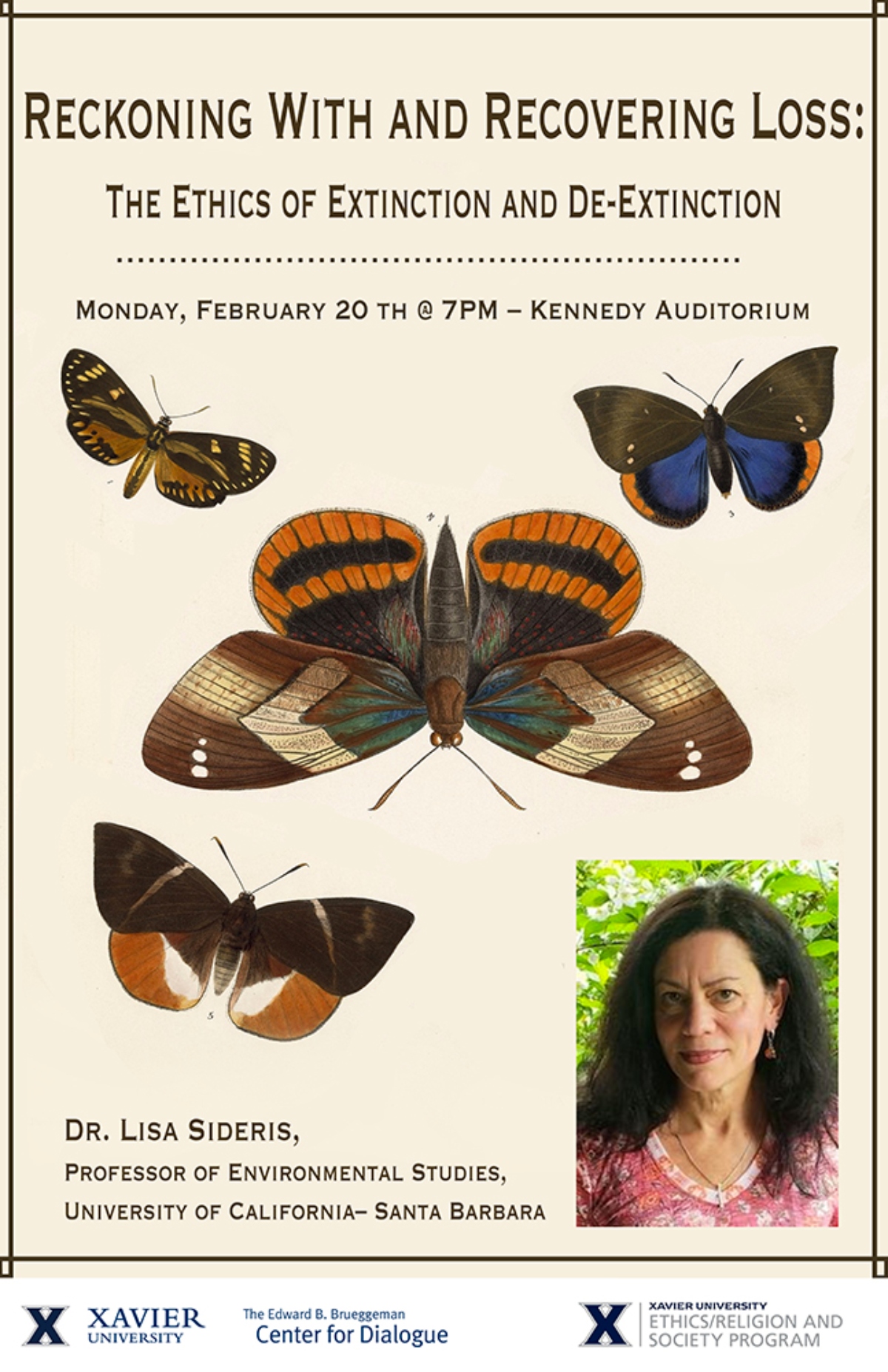 Dr. Lisa Sideris joined Xavier’s Ethics/Religion Society last week for a lecture on the Ethics of Extinction and De-Extinction.