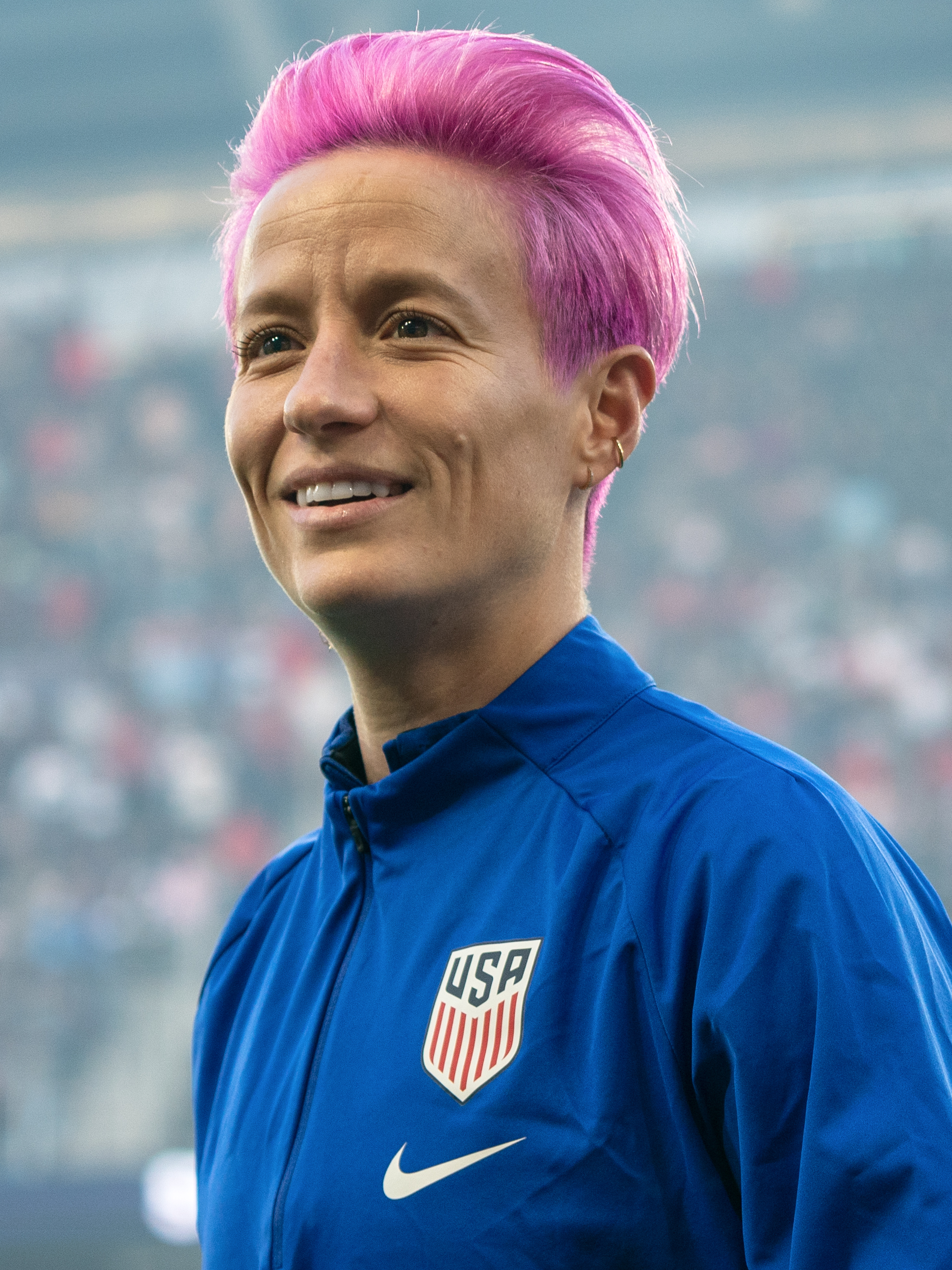 Rapinoe, who grew up in Redding, California, burst onto the scene at Portland University, where she helped lead the Pilots to a perfect season and the 2005 NCAA Women’s Soccer Tournament Championship as a freshman. Her early success cemented her spot on the women’s team roster in 2006 – at just 21 years old – and though back-to-back ACL injuries caused her to miss almost three years of action, she became a centerpiece of the national team for the subsequent decade and change, helping the USA to a goal medal in the 2012 London Olympics and back to back FIFA Women’s World Cup Championships in 2015 and 2019. In the latter, she was awarded the Golden Boot and the Golden Ball for her performance, topped off by her game-winning goal in the USA’s victory over the Netherlands in the final.