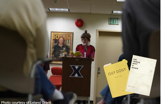 Bassett celebrated the release of his press with a poetry reading on the first floor of McDonald Memorial Library. Robin Robinson and Clocktower Review helped organize the event where poets were invited to read their work, including Xavier University’s own Dr. Kristen Renzi, poet and friend of Bassett’s Kylan Rice and author of “Oily Doily” Alyssa Perry.